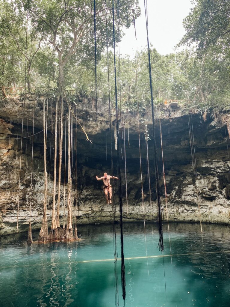 Cenote Oxman is een cenote in de regio Valladolid die onder de toeristen heel erg populair is! Bij aankomst zie je een prachtige hacienda waar je een kaartje kunt kopen. Je hebt hier verschillende prijzen omdat er ook een zwembad en restaurant aanwezig zijn. Wij zijn alleen naar de cenote gegaan. Binnen de cenote kan je een zwemvest pakken zodat je met de ropeswing het water in kunt springen! Ik ben hier inmiddels twee keer geweest en de eerste keer was het er vrij rustig. Maar omdat vele grote tours ook langs Cenote Oxman gaan, kan het er in de middag heel druk zijn! Zorg er dus voor dat je hier ‘s ochtends vroeg naartoe gaat!